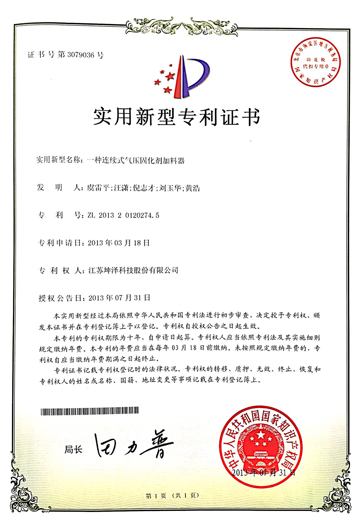 公司设有“南京(坤泽)淤泥资源化及产业化工程技术研究中心”和“连云港(坤泽)淤泥软基固化工程技术研究中心”,拥有多项专利,覆盖了固化剂、固化土产品以及施工工艺及专有生产和施工设备。